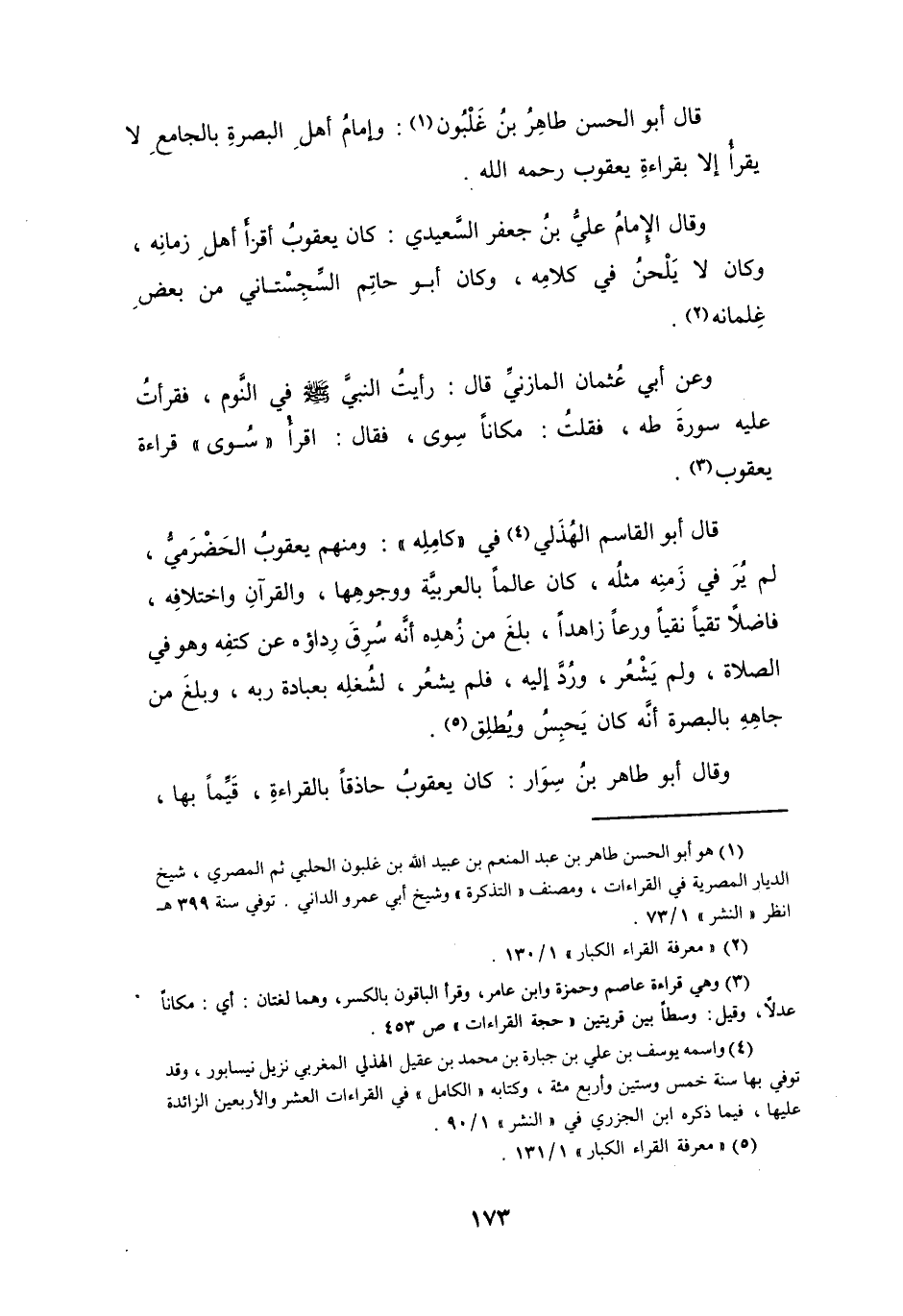 (4) واسمه يوسف بن علي بن جبارة بن محمد بن عقيل الهذلي المغربي نزيل نيسابور، وقد توفي بها سنة خمس وستين وأربع مئة، وكتابه " الكامل " في القراءات العشر والاربعين الزائدة عليها، فيما ذكره ابن الجزري في " النشر " 1 / 90.