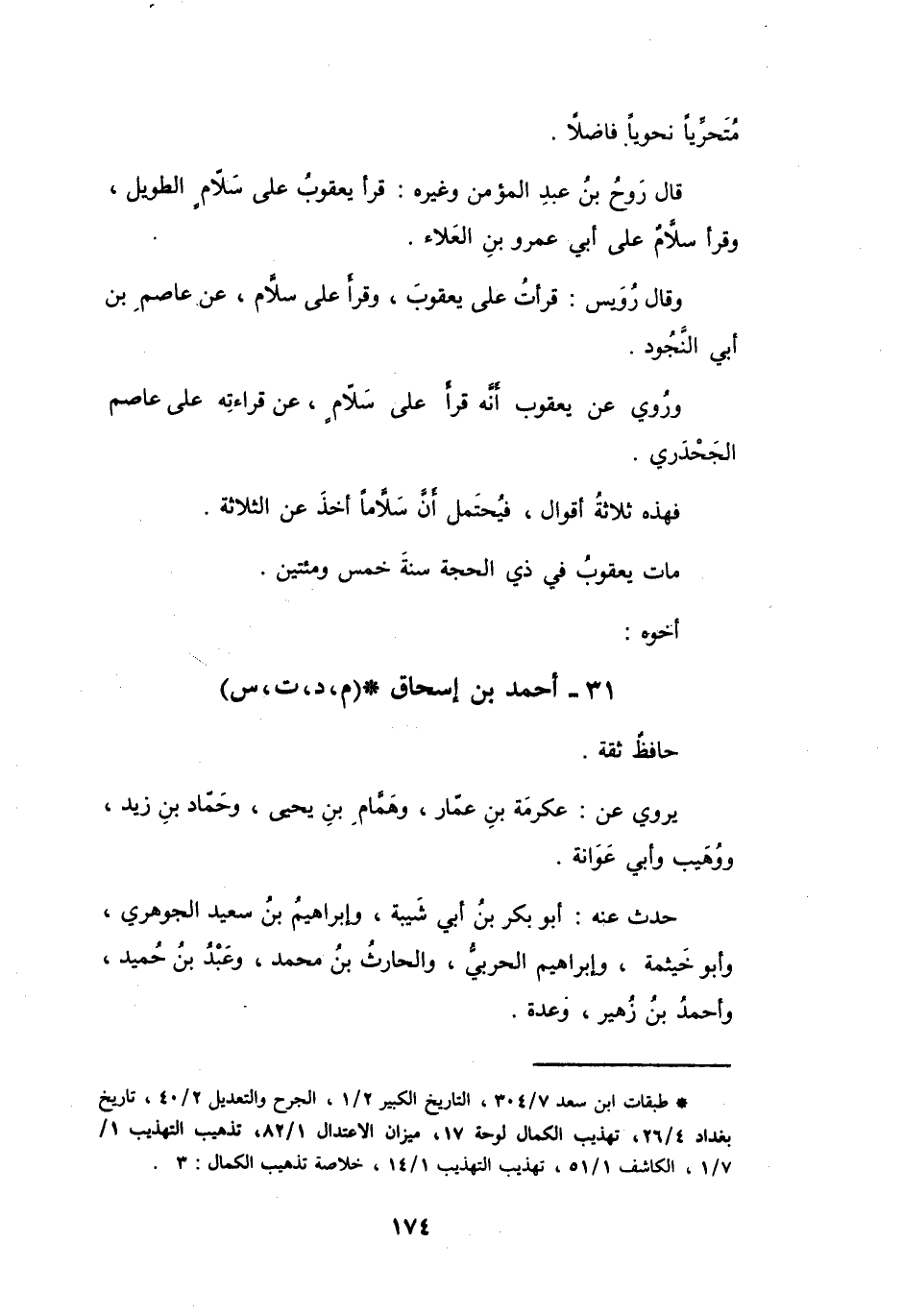 (*) طبقات ابن سعد 7 / 304، التاريخ الكبير 2 / 1، الجرح والتعديل 2 / 40، تاريخ بغداد 4 / 26، تهذيب الكمال لوحة 17، ميزان الاعتدال 1 / 82، تذهيب التهذيب 1 / 7 / 1، الكاشف 1 / 51، تهذيب التهذيب 1 / 14، خلاصة تذهيب الكمال: 3.