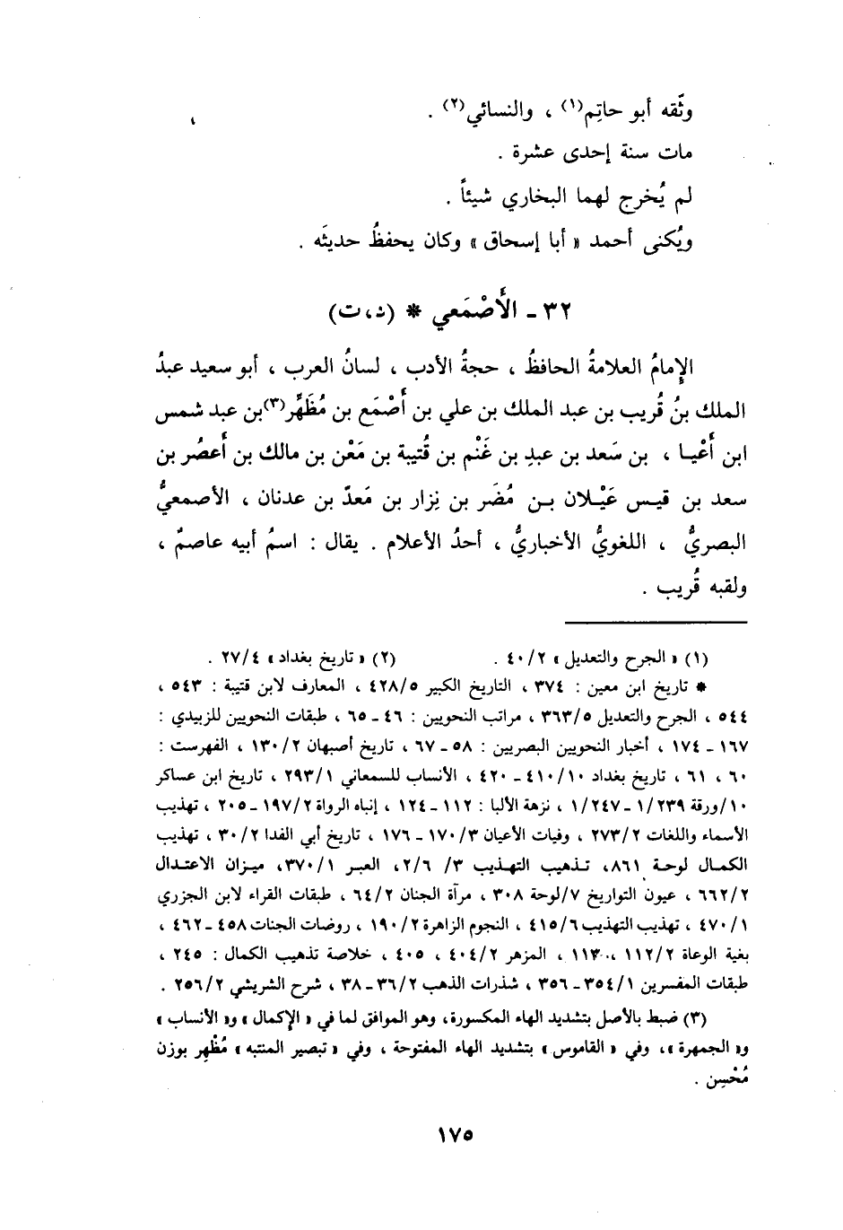 32 - الأَصْمَعِيُّ أَبُو سَعِيْدٍ عَبْدُ المَلِكِ بنُ قُرَيْبٍ * (د، ت)