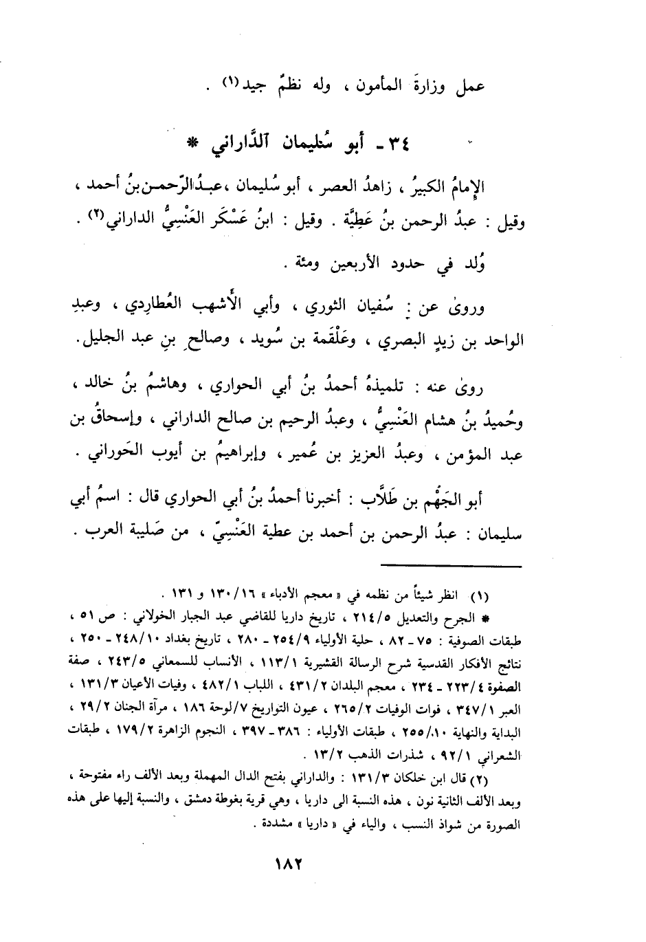 34 - أَبُو سُلَيْمَانَ الدَّارَانِيُّ عَبْدُ الرَّحْمَنِ بنُ أَحْمَدَ *