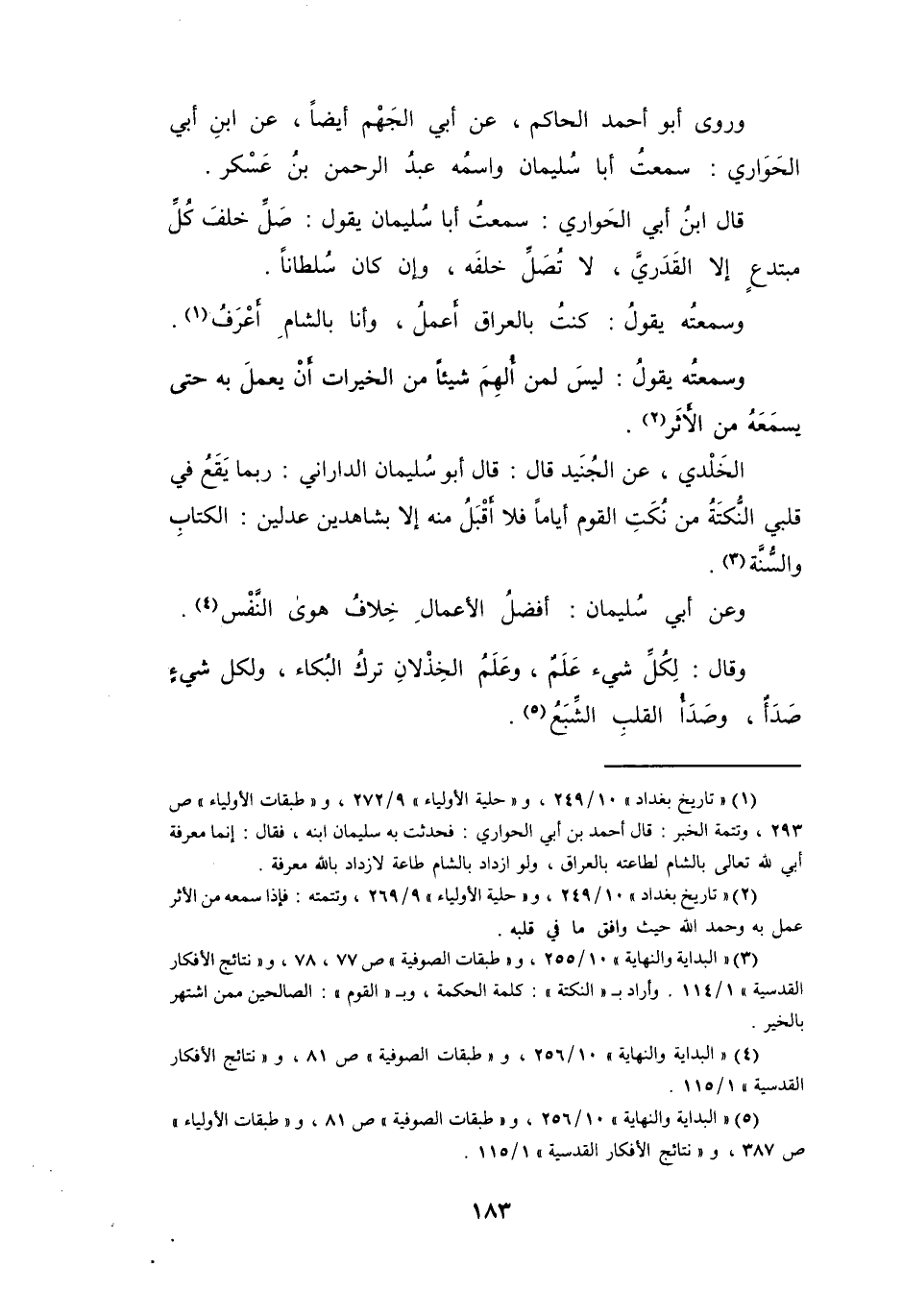 (5) " البداية والنهاية " 10 / 256، و" طبقات الصوفية " ص 81، و" طبقات الأولياء " ص 387، و" نتائج الافكار القدسية " 1 / 115.