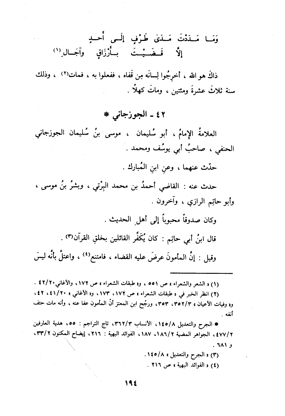 42 - الجَوْزَجَانِيُّ مُوْسَى بنُ سُلَيْمَانَ الحَنَفِيُّ *