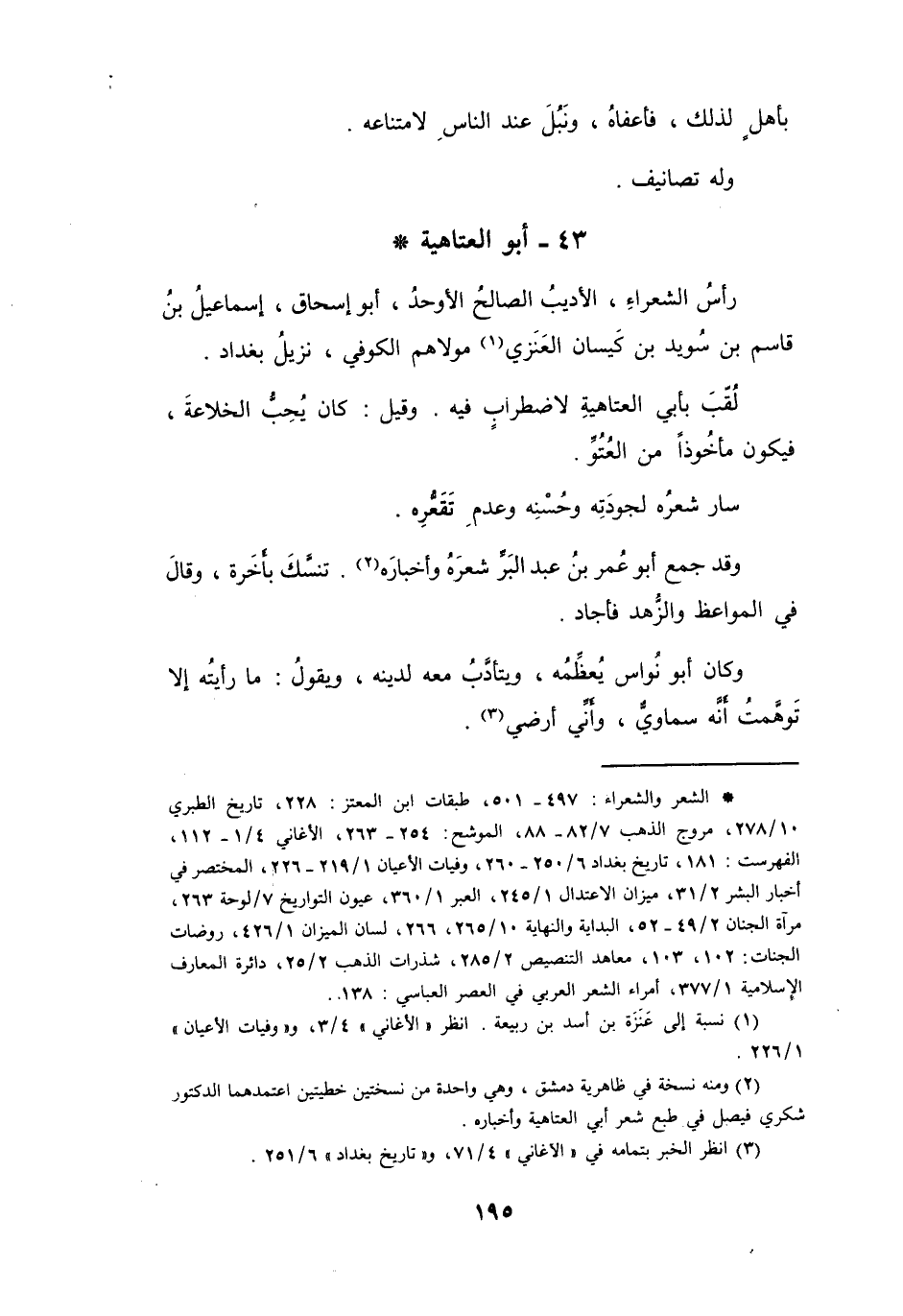 43 - أَبُو العَتَاهِيَةِ إِسْمَاعِيْلُ بنُ قَاسمِ بنِ سُوَيْدٍ العَنَزِيُّ *