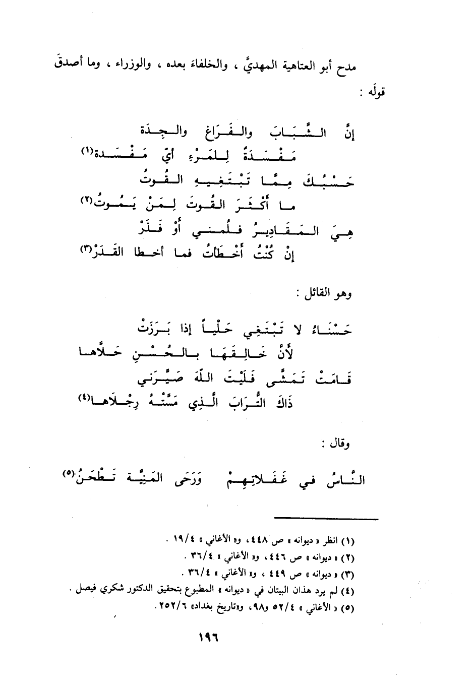 (5) " الاغاني " 4 / 52 و98، و" تاريخ بغداد " 6 / 252.