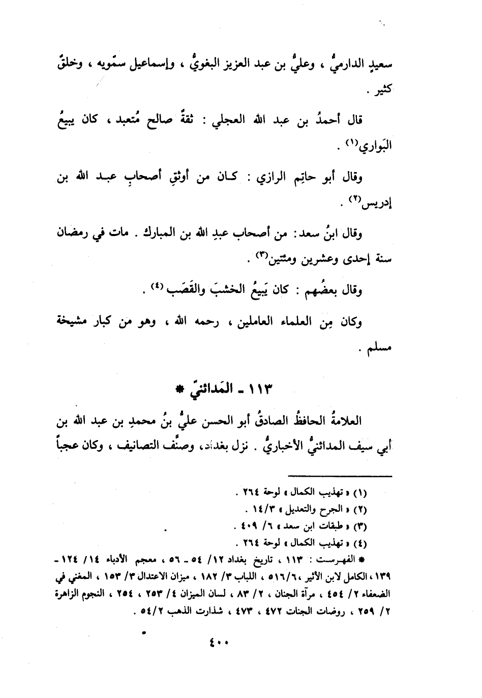 113 - المَدَائِنِيُّ أَبُو الحَسَنِ عَلِيُّ بنُ مُحَمَّدِ بنِ عَبْدِ اللهِ *