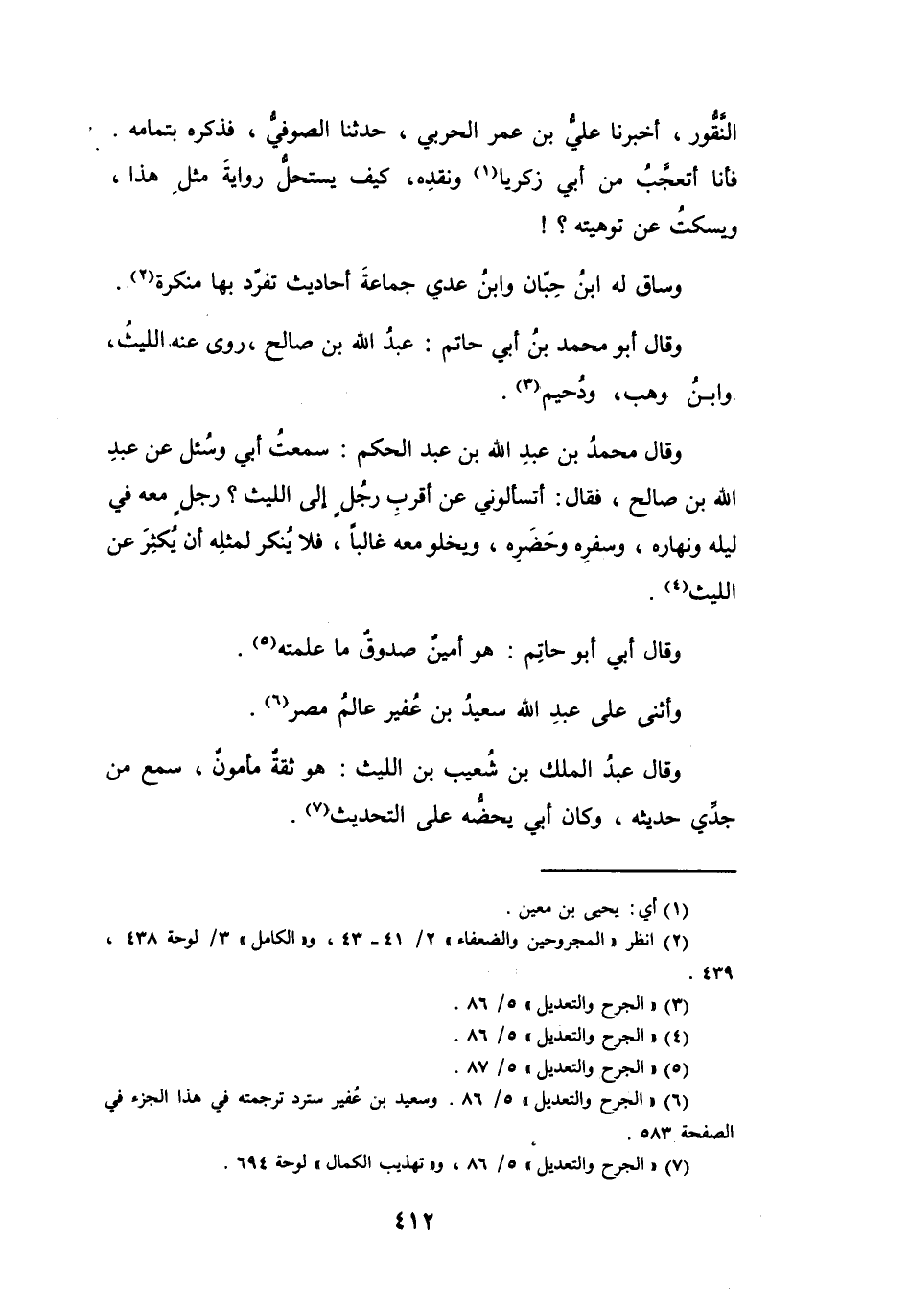 (7) " الجرح والتعديل " 5 / 86، و" تهذيب الكمال " لوحة 694.
