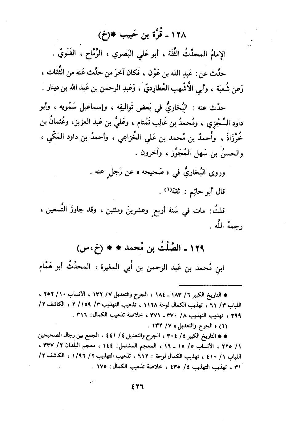 128 - قُرَّةُ بنُ حَبِيْبٍ أَبُو عَلِيٍّ البَصْرِيُّ الرَّمَّاحُ * (خَ)