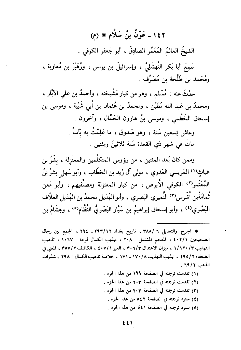 (*) الجرح والتعديل 6 / 388، تاريخ بغداد 12 / 293 - 294، الجمع بين رجال الصحيحين 1 / 402، المعجم المشتمل: 208، تهذيب الكمال لوحة: 1067، تذهيب التهذيب 3 / 120 / 1، ميزان الاعتدال 3 / 306، العبر 1 / 407، الكاشف 2 / 357، المغني في الضعفاء 2 / 495، تهذيب التهذيب 8 / 170 - 171، خلاصة تذهيب الكمال: 298، شذرات الذهب 2 / 69.