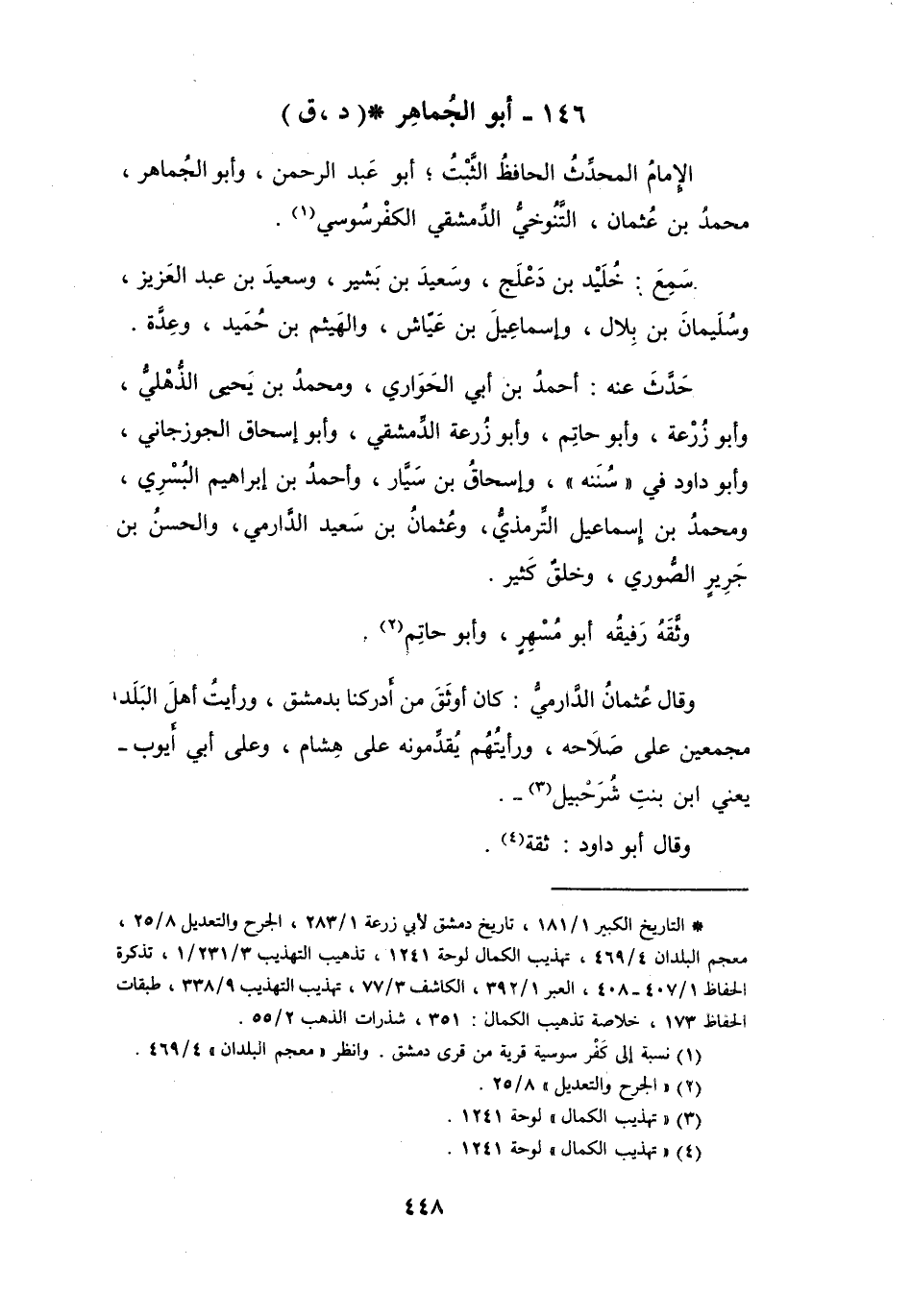 146 - أَبُو الجُمَاهِرِ مُحَمَّدُ بنُ عُثْمَانَ التَّنُوْخِيُّ * (د، ق)