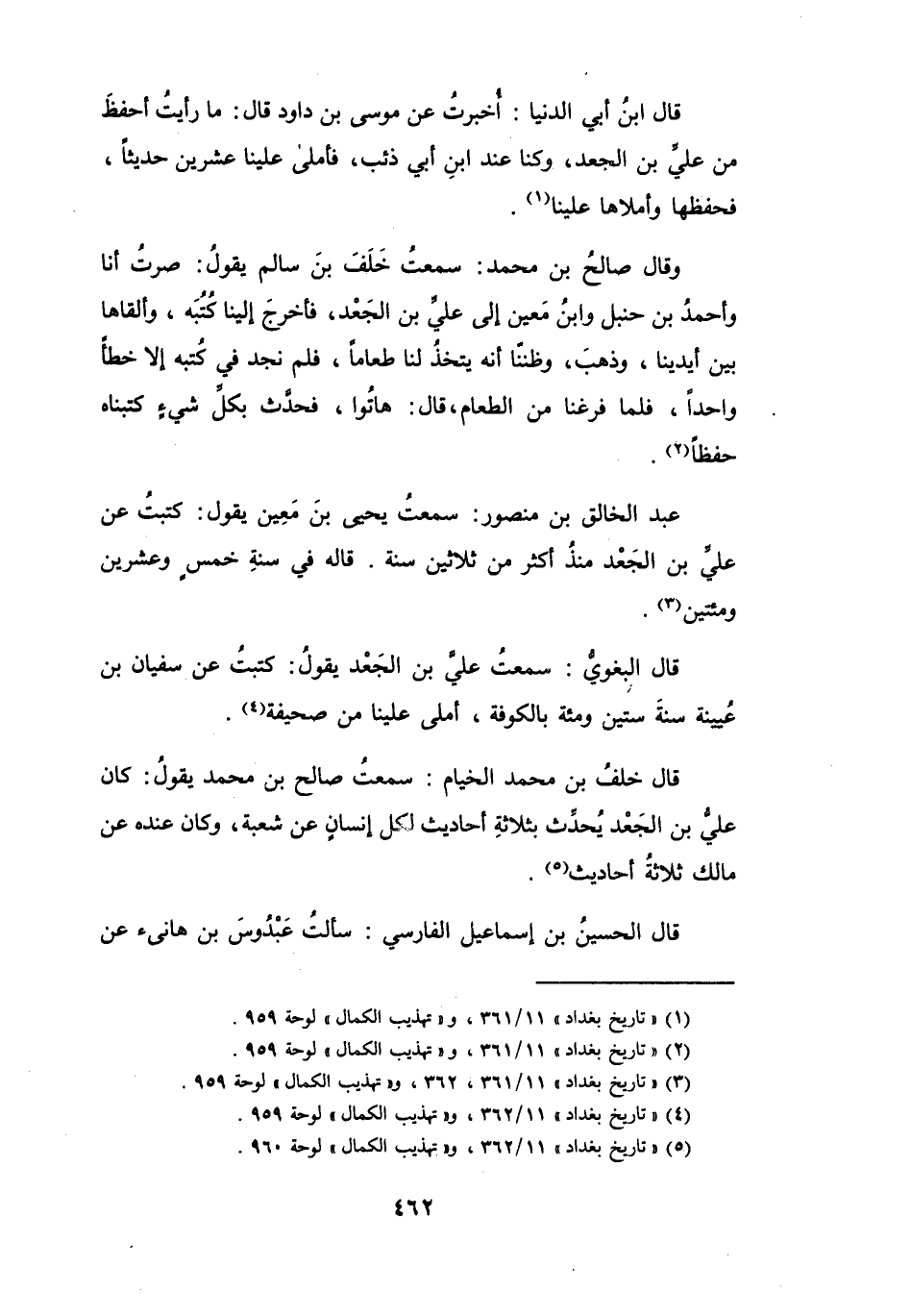 (5) " تاريخ بغداد " 11 / 362، و" تهذيب الكمال " لوحة 960.
