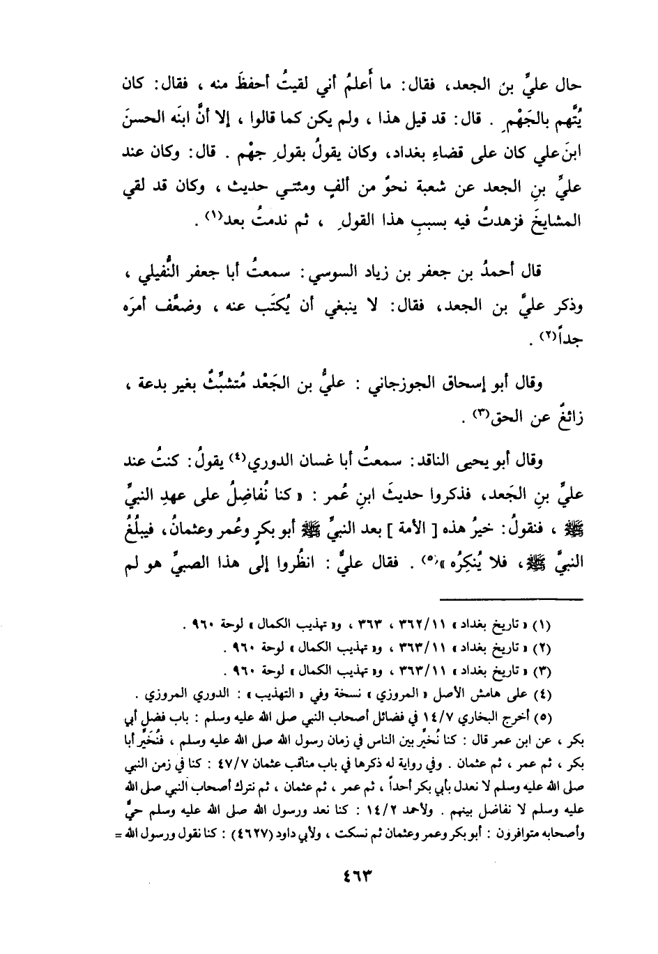 (1) " تاريخ بغداد " 11 / 362، 363، و" تهذيب الكمال " لوحة 960.