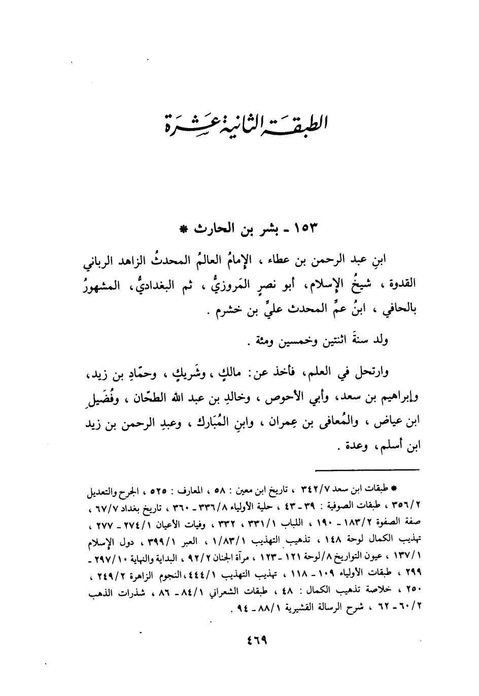 153 - بِشْرُ بنُ الحَارِثِ بنِ عَبْدِ الرَّحْمَنِ بنِ عَطَاءٍ المَرْوَزِيُّ *