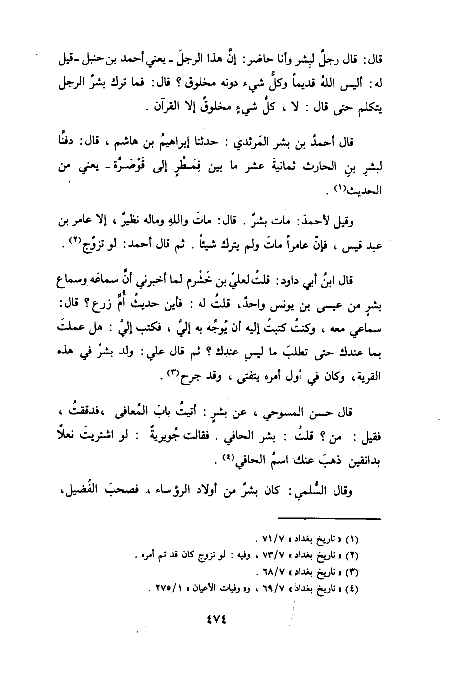 (4) " تاريخ بغداد " 7 / 69، و" وفيات الأعيان " 1 / 275.
