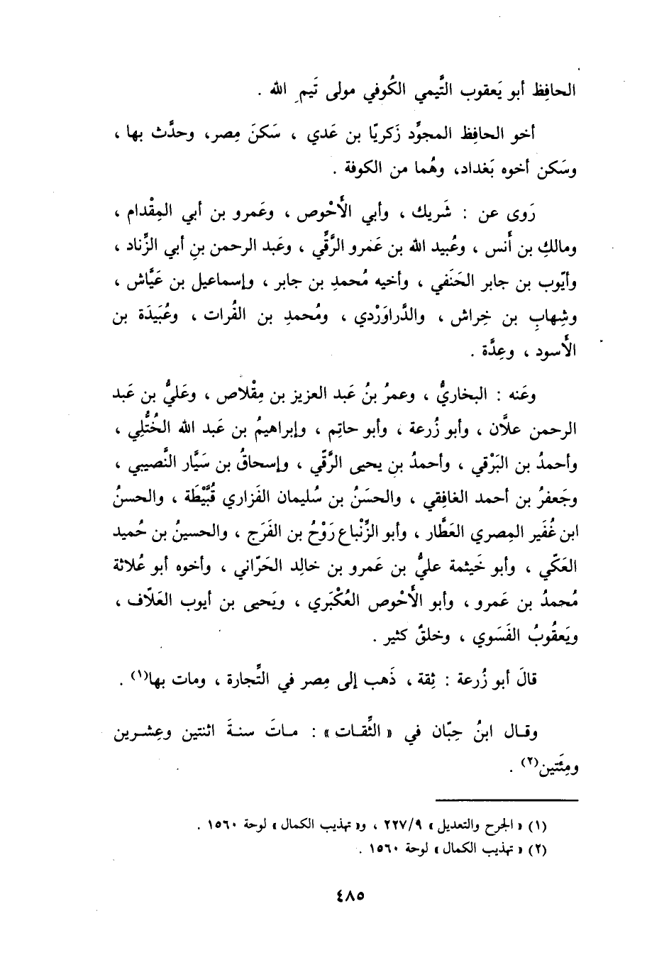 (1) " الجرح والتعديل " 9 / 227، و" تهذيب الكمال " لوحة 1560.