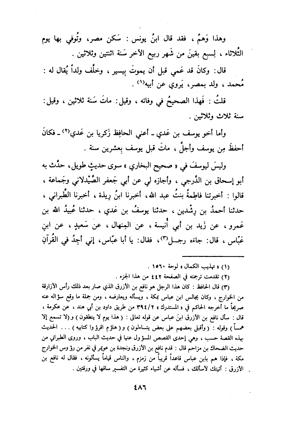 وَأَمَّا أَخُو يُوْسُفَ بنِ عَدِيٍّ - أَعْنِي: الحَافِظَ زَكَرِيَّا بنَ عَدِيٍّ (2) - فَكَانَ أَحْفَظَ مِنْ يُوْسُفَ وَأَجَلَّ، مَاتَ قَبْلَ يُوْسُفَ بِعِشْرِيْنَ سَنَةً.