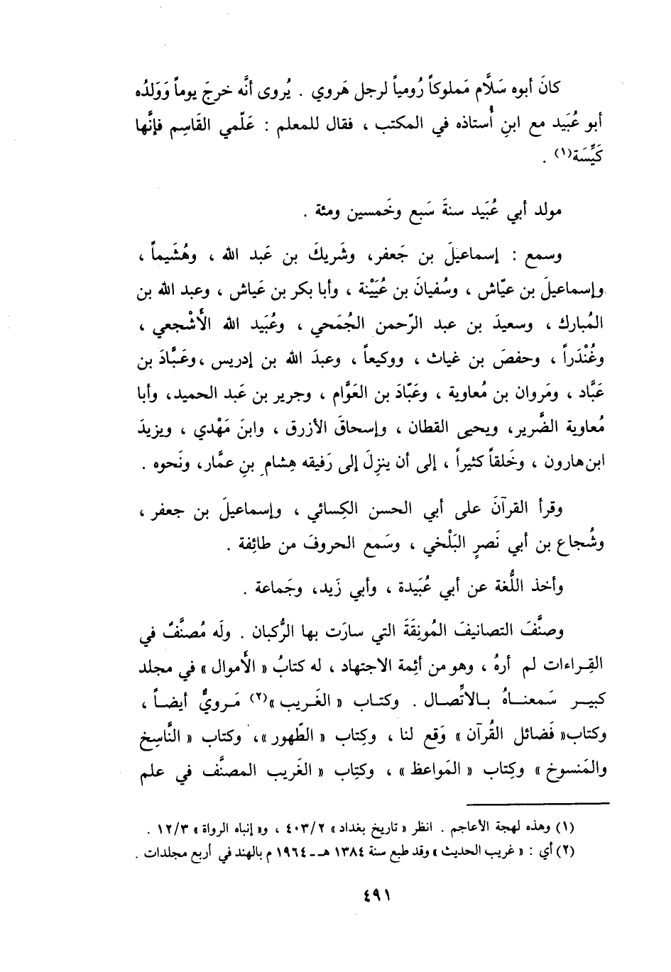 مَوْلِدُ أَبِي عُبَيْدٍ: سَنَةَ سَبْعٍ وَخَمْسِيْنَ وَمائَةٍ.