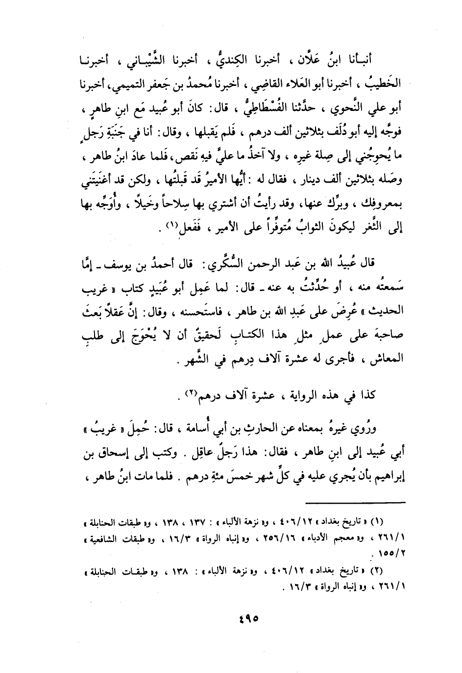 (2) " تاريخ بغداد " 12 / 406، و" نزهة الالباء ": 138، و" طبقات الحنابلة " 1 / 261، و" إنباه الرواة " 3 / 16.