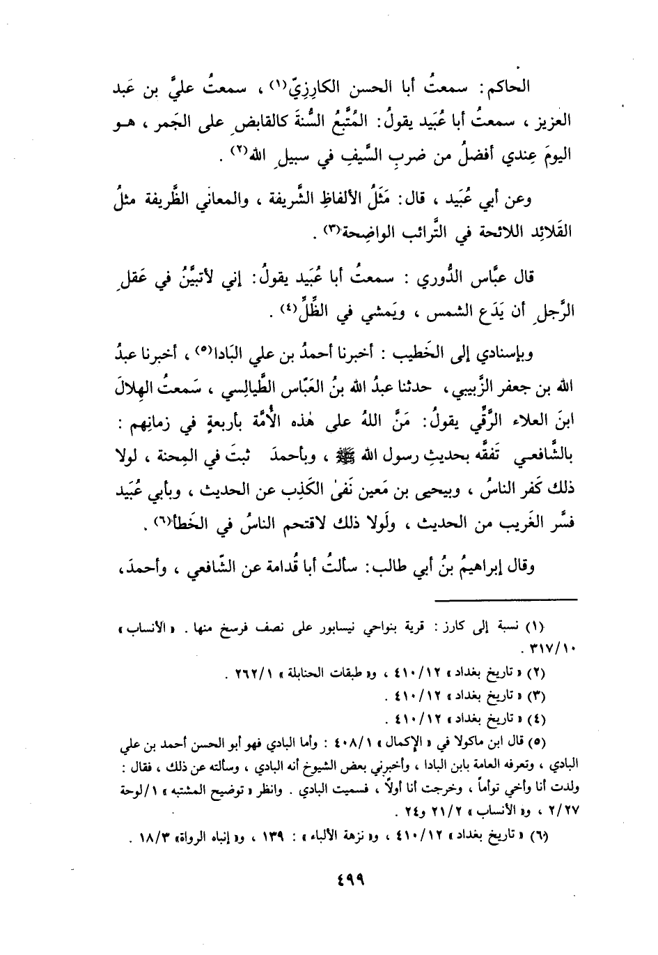 (6) " تاريخ بغداد " 12 / 410، و" نزهة الالباء ": 139، و" إنباه الرواة " 3 / 18.