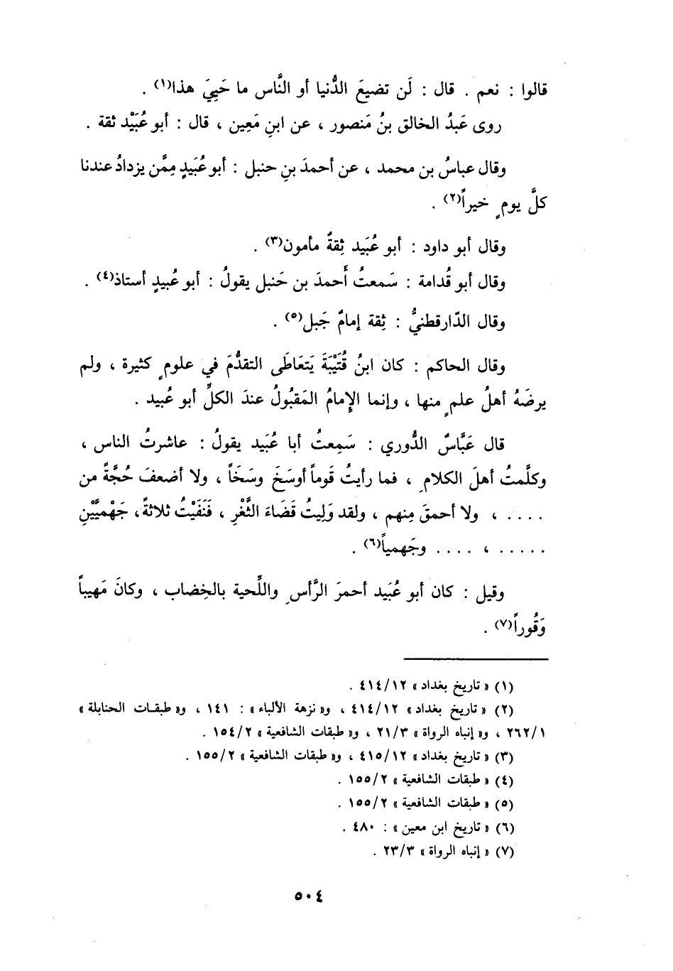 وَقَالَ أَبُو دَاوُدَ: أَبُو عُبَيْدٍ: ثِقَةٌ، مَأْمُوْنٌ (3) .