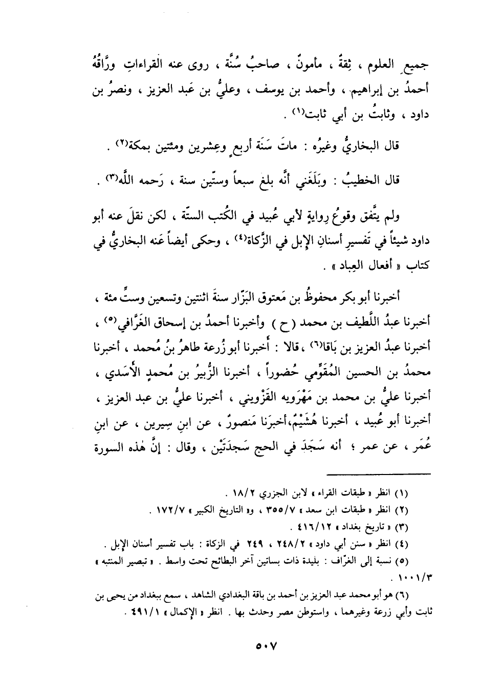 (1) انظر " طبقات القراء " لابن الجزري 2 / 18.