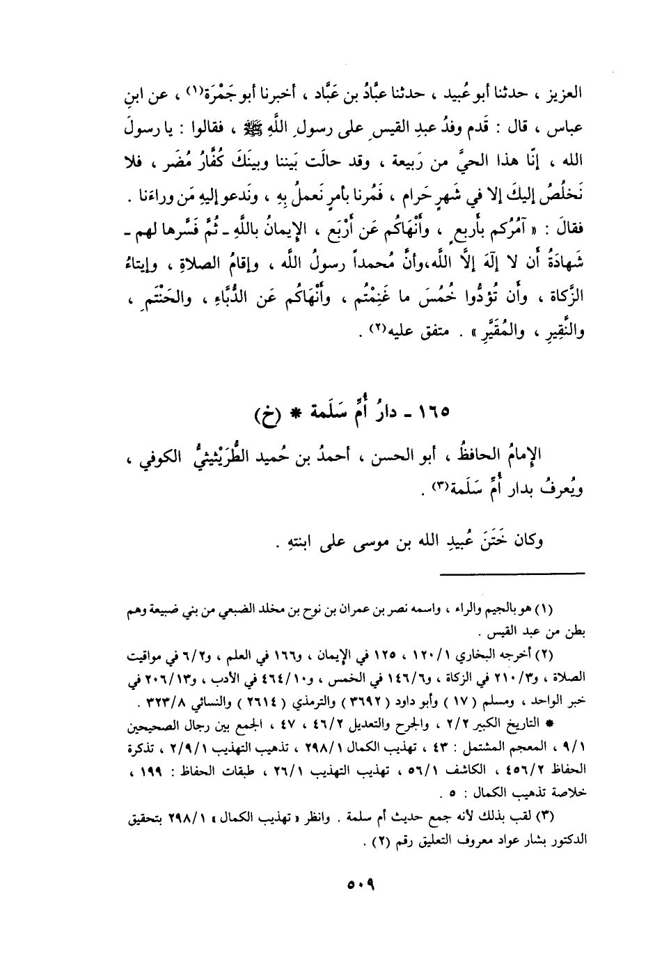(3) لقب بذلك لأنه جمع حديث أم سلمة. وانظر " تهذيب الكمال " 1 / 298 بتحقيق الدكتور بشار عواد معروف التعليق رقم (2) .