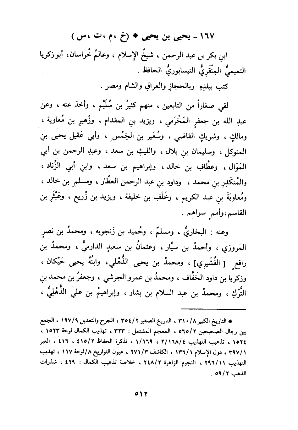 167 - يَحْيَى بنُ يَحْيَى بنِ بَكْرِ بنِ عَبْدِ الرَّحْمَنِ التَّمِيْمِيُّ * (خَ، م، ت، س)