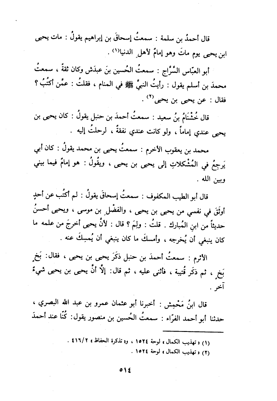 (1) " تهذيب الكمال " لوحة 1524، و" تذكرة الحفاظ " 2 / 416.