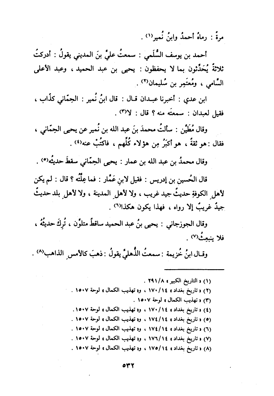 (8) " تاريخ بغداد " 14 / 175، و" تهذيب الكمال " لوحة 1507.