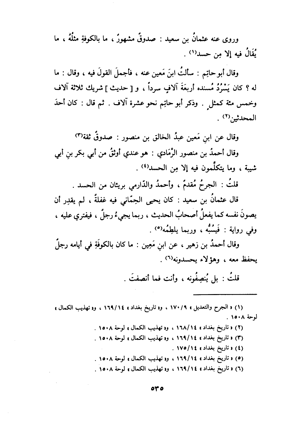 (1) " الجرح والتعديل " 9 / 170، و" تاريخ بغداد " 14 / 169، و" تهذيب الكمال " لوحة 1508.