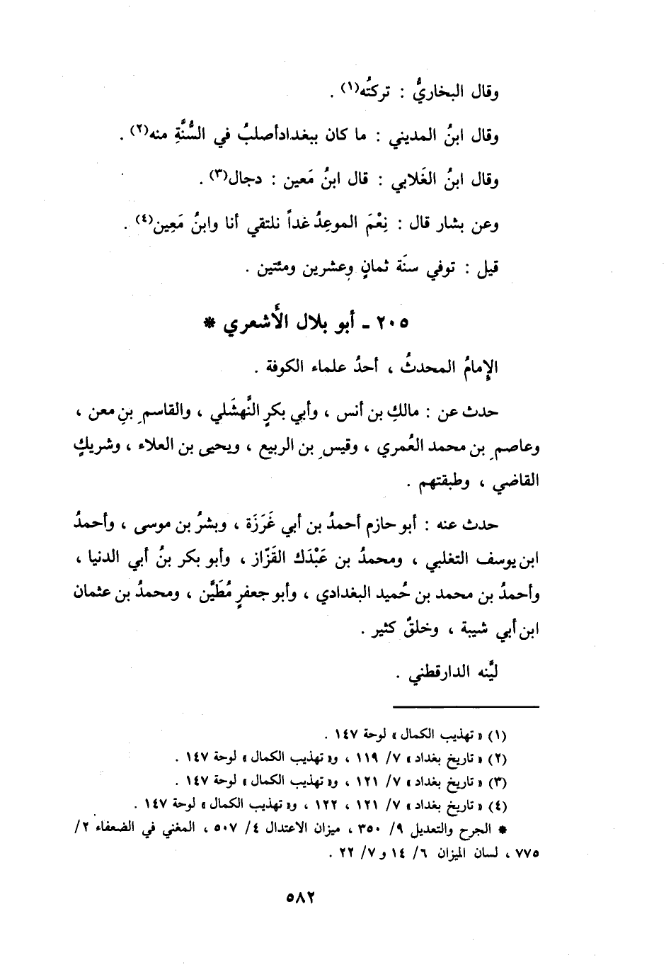 (4) " تاريخ بغداد " 7 / 121، 122، و" تهذيب الكمال " لوحة 147.