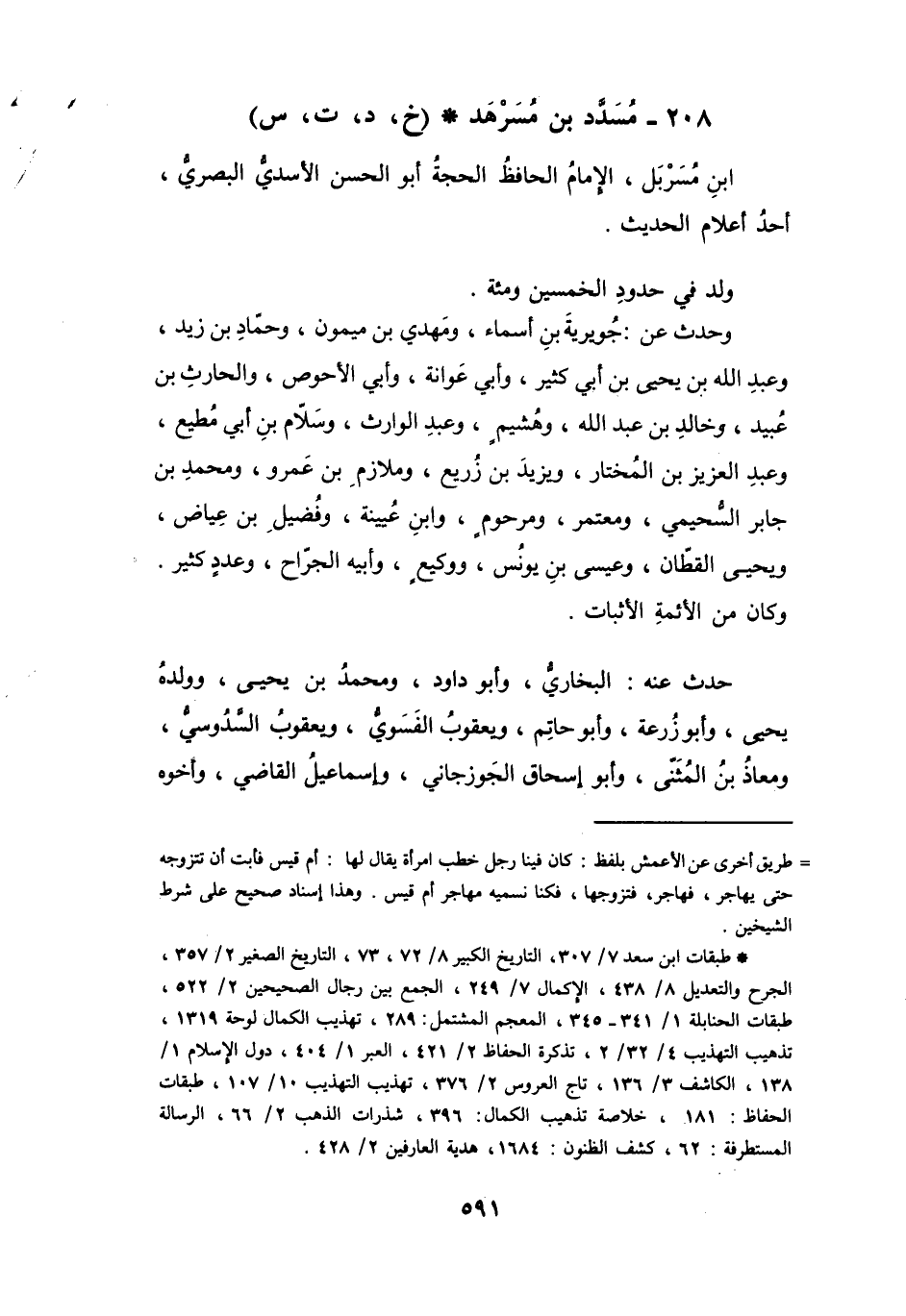 208 - مُسَدَّدُ بنُ مُسَرْهَدِ بنِ مُسَرْبَلٍ الأَسَدِيُّ * (خَ، د، ت، س)