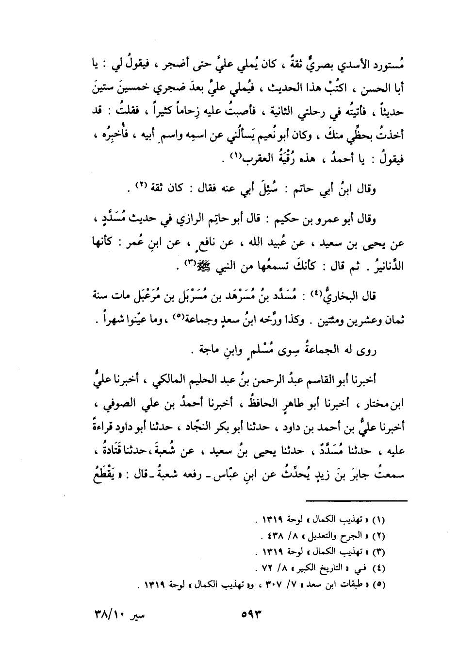 (5) " طبقات ابن سعد " 7 / 307، و" تهذيب الكمال " لوحة 1319.