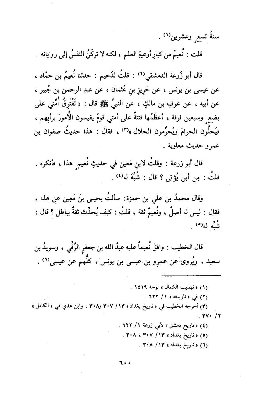 قُلْتُ: نُعَيْمٌ مِنْ كِبَارِ أَوْعِيَةِ العِلْمِ، لَكِنَّهُ لاَ تَرْكَنُ النَّفسُ إِلَى رِوَايَاتِهِ.