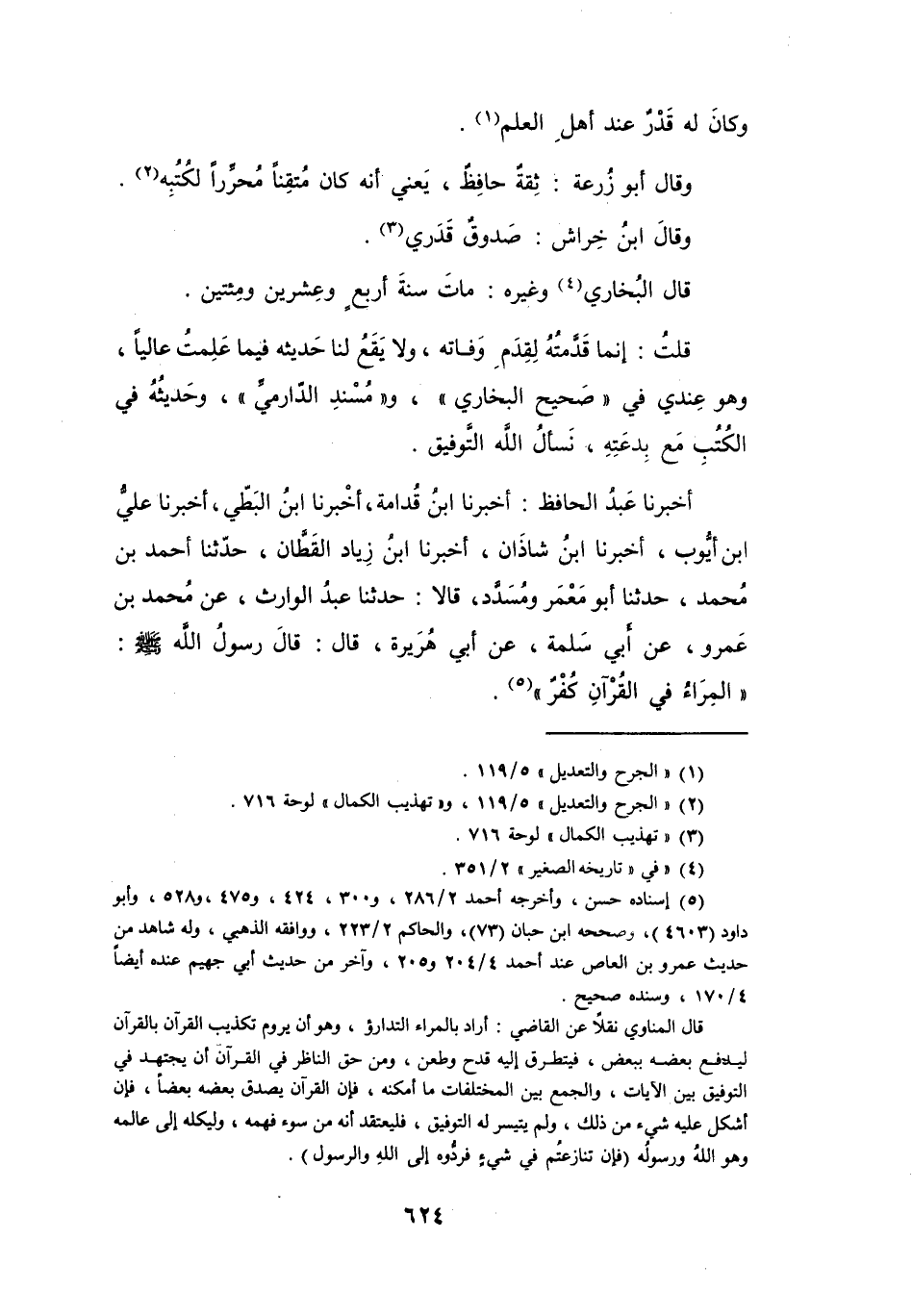 (2) " الجرح والتعديل " 5 / 119، و" تهذيب الكمال " لوحة 716.