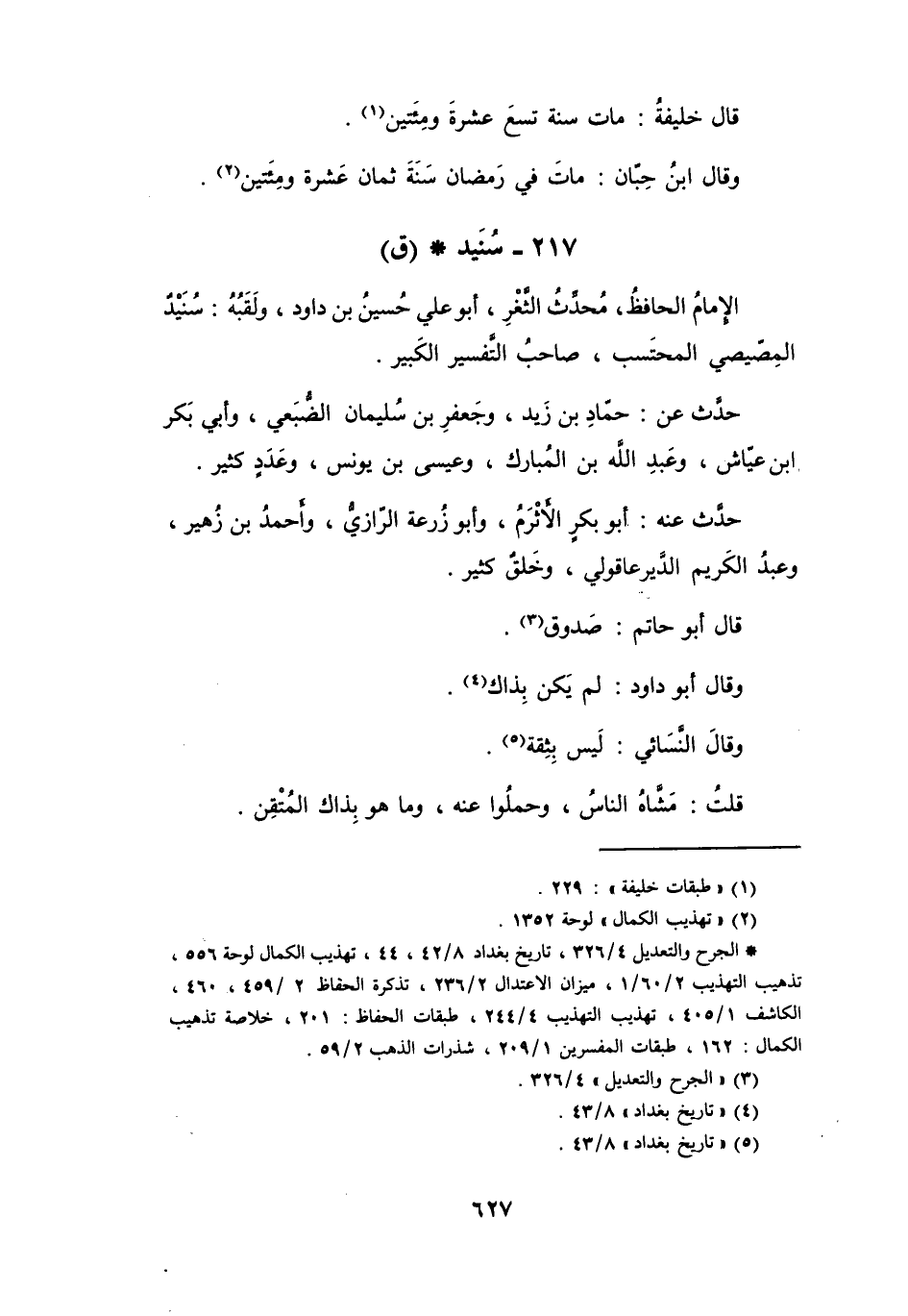 217 - سُنَيْدٌ أَبُو عَلِيٍّ حُسَيْنُ بنُ دَاوُدَ المَصِّيْصِيُّ * (ق)