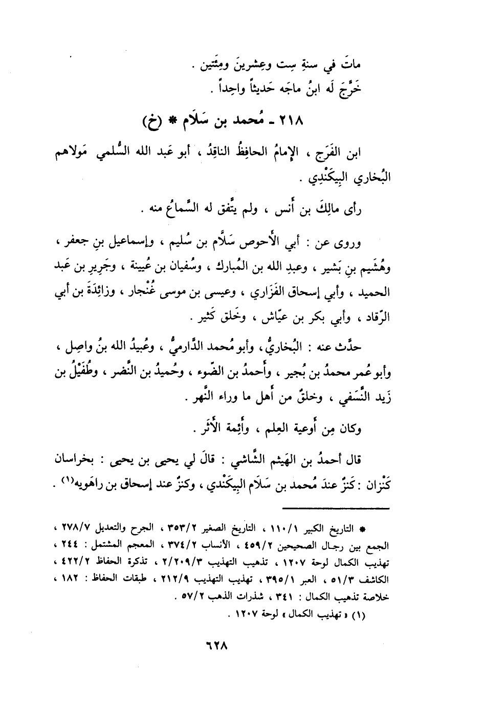 218 - مُحَمَّدُ بنُ سَلاَمِ بنِ الفَرَجِ السُّلَمِيُّ مَوْلاَهُمْ * (خَ)