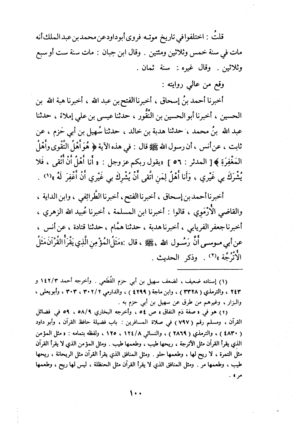 (2) هو في " صفة ذم النفاق " ص 54، وأخرجه البخاري 9 / 58، 59 في فضائل القرآن، ومسلم رقم (797) في صلاة المسافرين: باب فضيلة حافظ القرآن، وأبو داود (4830) ، والترمذي (2869) ، والنسائي 8 / 124، 125، ولفظه بتمامه: " مثل المؤمن