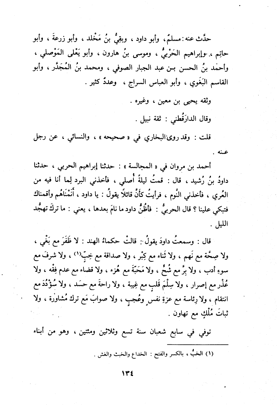 أَحْمَدُ بنُ مَرْوَانَ فِي (المُجَالَسَةِ) : حَدَّثَنَا إِبْرَاهِيْمُ الحَرْبِيُّ، حَدَّثَنَا دَاوُدُ بنُ رُشَيْدٍ، قَالَ: