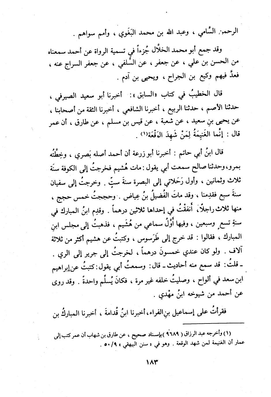(1) وأخرجه عبد الرزاق (9689) بإسناد صحيح، عن طارق بن شهاب أن عمر كتب إلى عمار أن الغنيمة لمن شهد الوقعة.