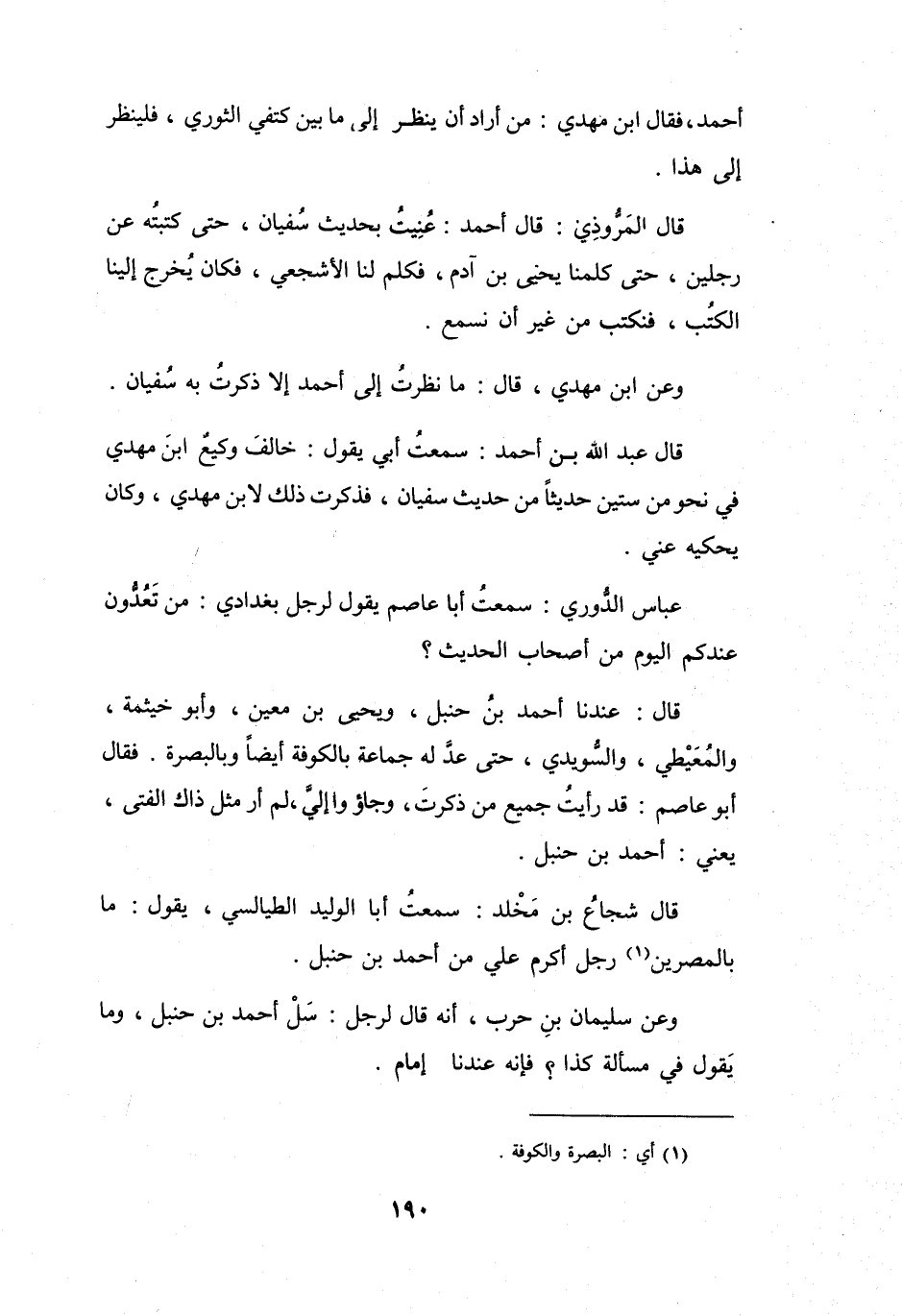 أَحْمَدُ، فَقَالَ ابْنُ مَهْدِيٍّ: مَنْ أَرَادَ أَنْ يَنْظُرَ إِلَى مَا بَيْنَ كَتِفَيِ الثَّوْرِيِّ، فَليَنظُرْ إِلَى هَذَا.