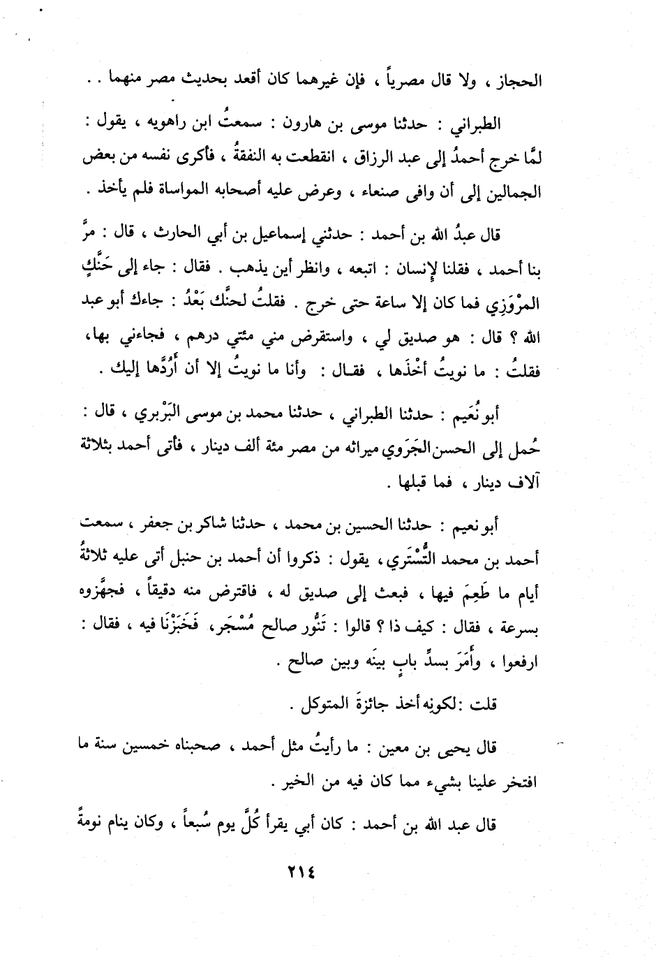 قَالَ عَبْدُ اللهِ بنُ أَحْمَدَ: حَدَّثَنِي إِسْمَاعِيْلُ بنُ أَبِي الحَارِثِ، قَالَ: