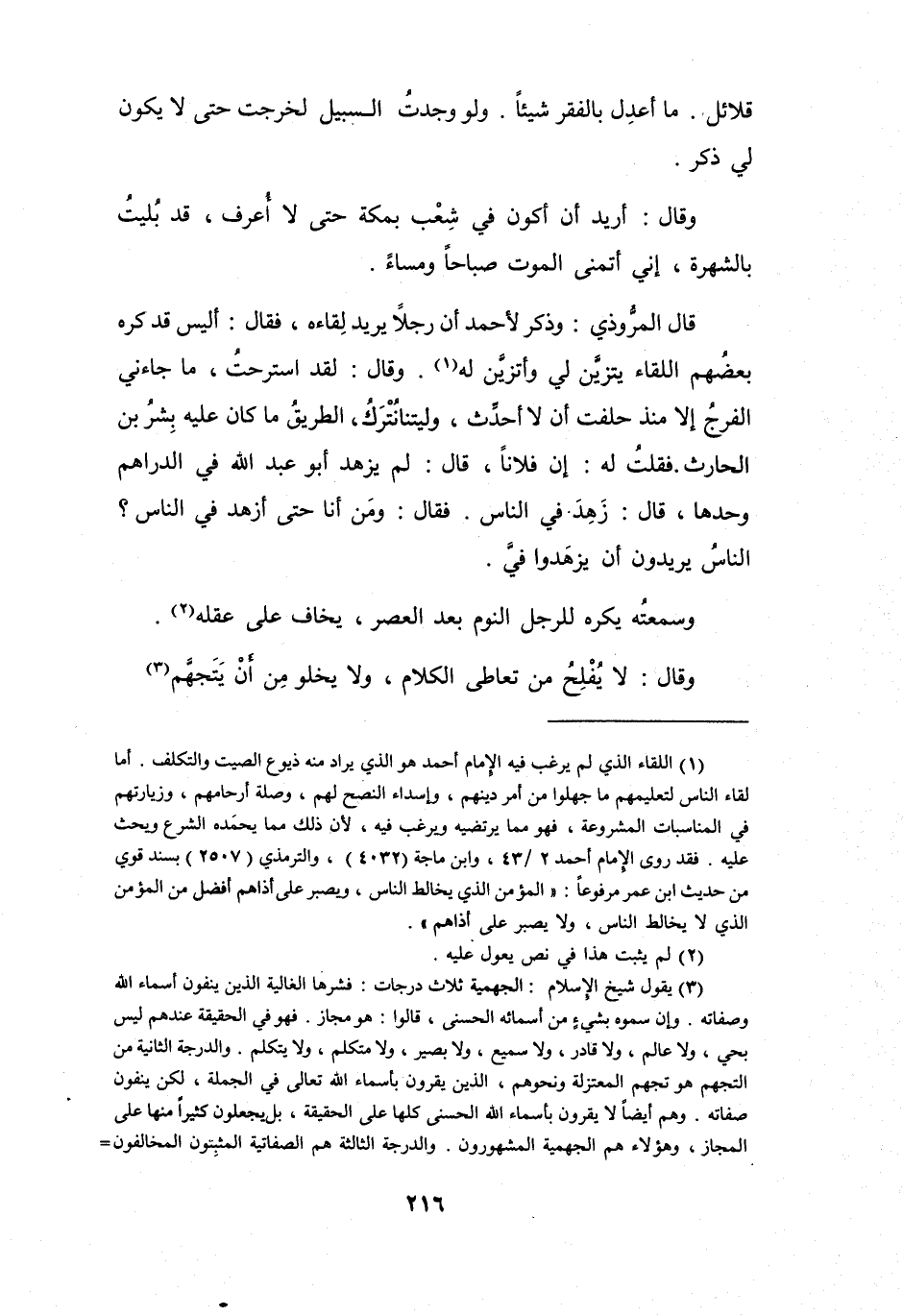 (1) اللقاء الذي لم يرغب فيه الامام أحمد هو الذي يراد منه ذيوع الصيت والتكلف.