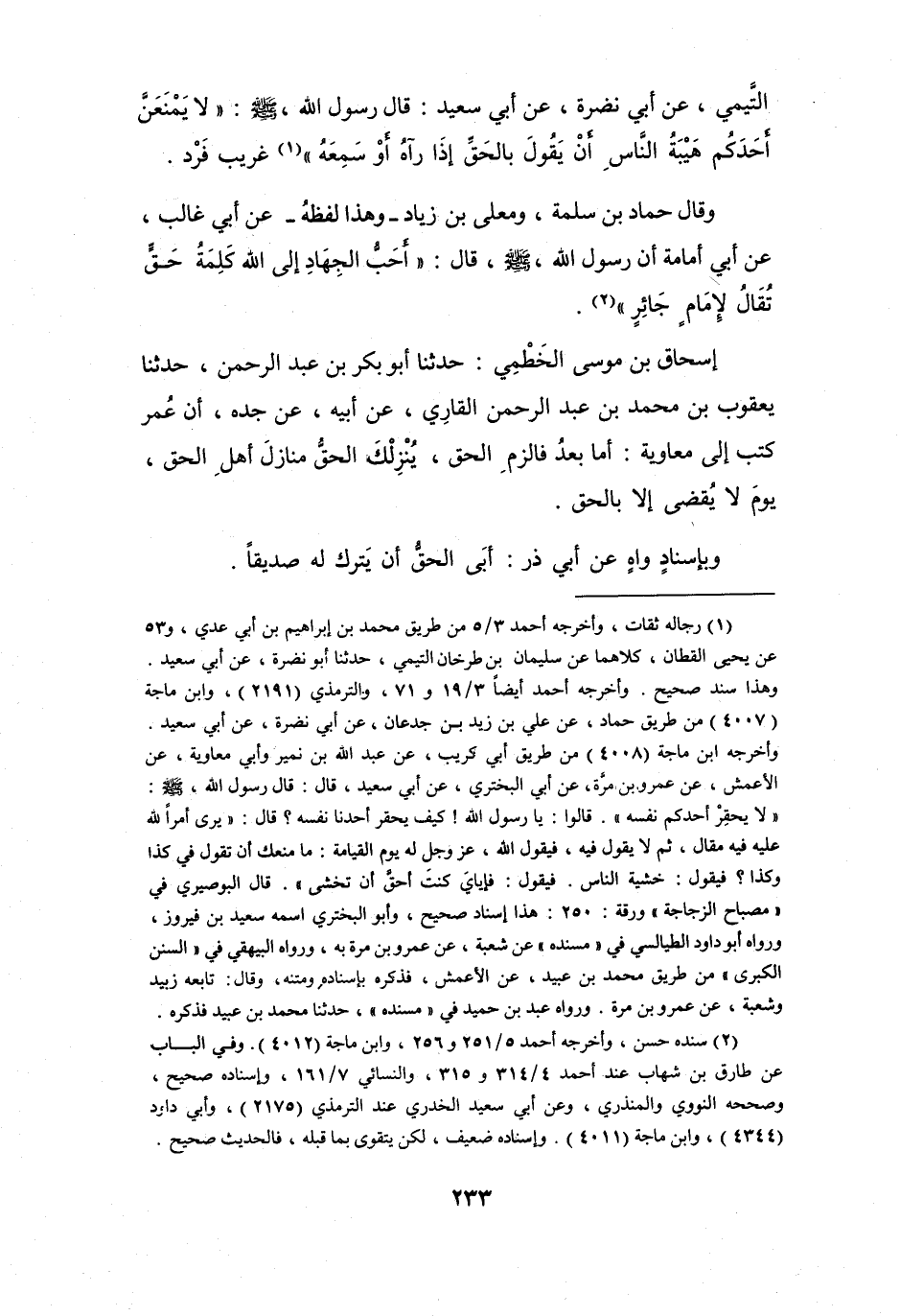 أَنَّ رَسُوْلَ اللهِ -صَلَّى اللَّهُ عَلَيْهِ وَسَلَّمَ- قَالَ: (أَحَبُِّ الجِهَادِ إِلَى اللهِ كَلِمَةُ حَقٍّ تُقَالُ لإِمَامٍ جَائِرٍ (2)) .