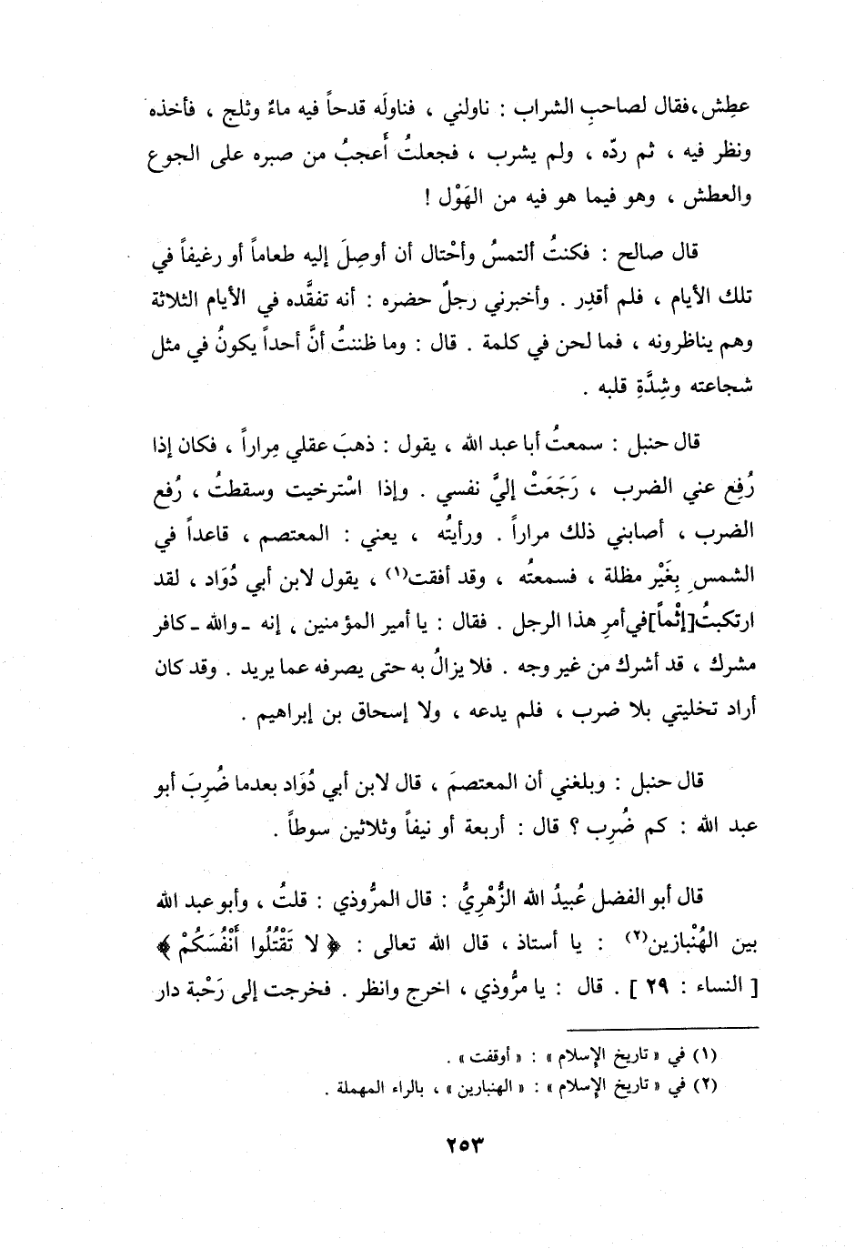 قُلْتُ - وَأَبُو عَبْدِ اللهِ بَيْنَ الهُنْبازِينَ (2) -: يَا أُسْتَاذُ، قَالَ اللهُ -تَعَالَى-: {لاَ تَقْتُلُوا أَنْفُسَكُم} [النِّسَاءُ: 29] .