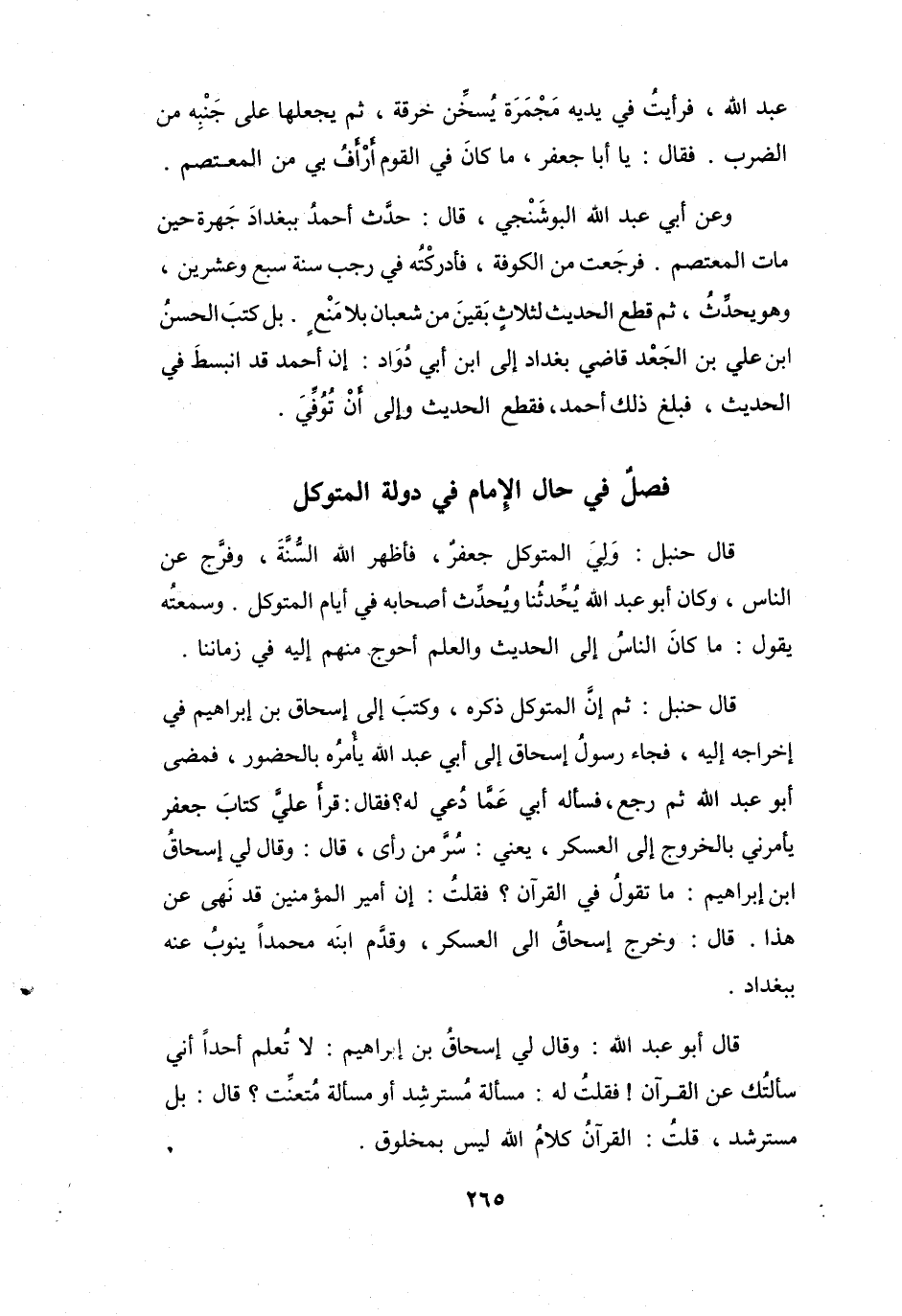 فَصْلٌ فِي حَالِ الإِمَامِ فِي دَوْلَةِ المُتَوَكِّلِ