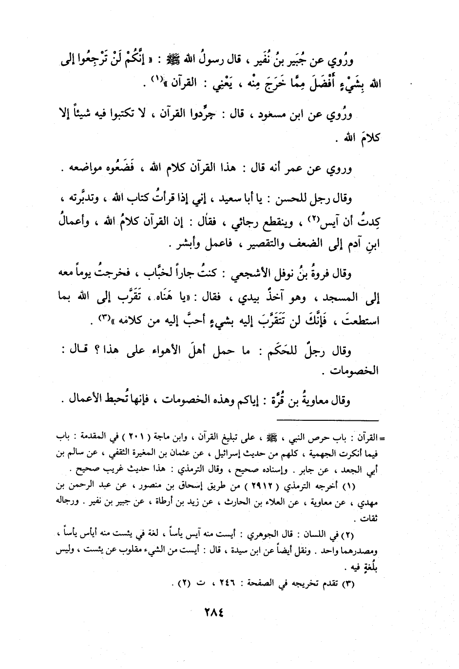 (1) أخرجه الترمذي (2912) من طريق إسحاق بن منصور، عن عبد الرحمن بن مهدي، عن معاوية، عن العلاء بن الحارث، عن زيد بن أرطاة، عن جبير بن نفير.