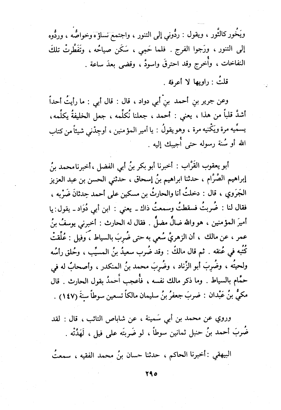 لَقَدْ ضُرِبَ أَحْمَدُ بنُ حَنْبَلٍ ثَمَانِيْنَ سَوطاً، لَوْ ضَربتَه عَلَى فِيلٍ، لَهَدَّتْهُ.