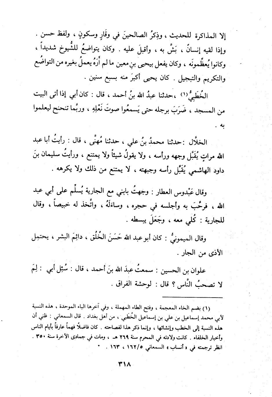 الخُطَبِيُّ (1) : حَدَّثَنَا عَبْدُ اللهِ بنُ أَحْمَدَ، قَالَ: