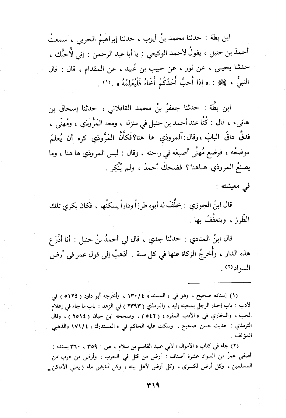ابْنُ بَطَّةَ: حَدَّثَنَا مُحَمَّدُ بنُ أَيُّوْبَ، حَدَّثَنَا إِبْرَاهِيْمُ الحَرْبِيُّ، سَمِعْتُ أَحْمَدَ بنَ حَنْبَلٍ يَقُوْلُ لأَحْمَدَ الوَكِيْعِيِّ: