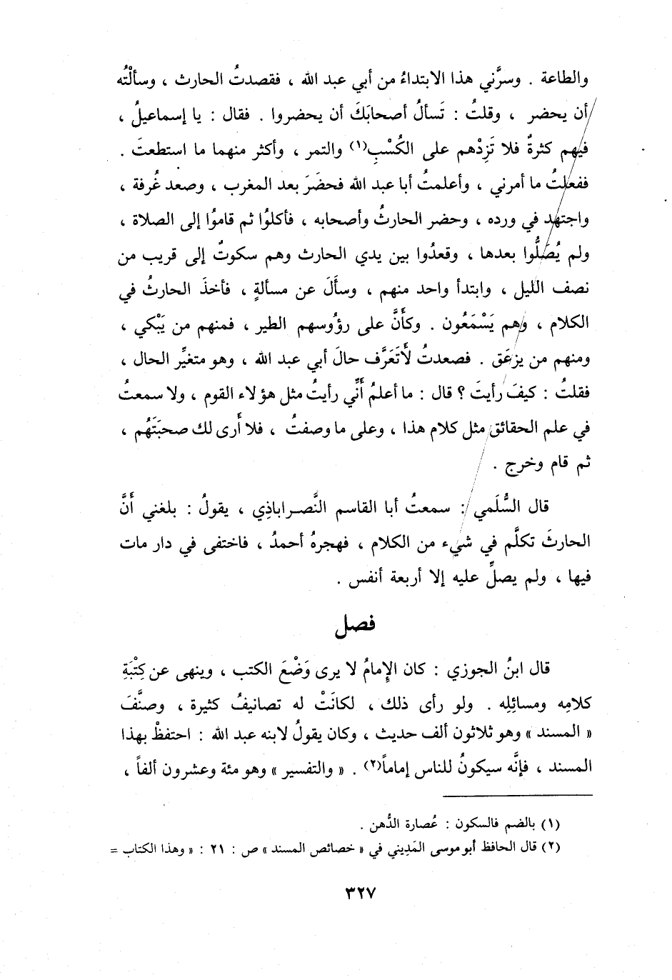 وَسَرَّنِي هَذَا الابْتِدَاءُ مِنْ أَبِي عَبْدِ اللهِ، فَقَصَدتُ الحَارِثَ، وَسَأَلْتُه أَنْ يَحضُرَ، وَقُلْتُ: تَسأَلُ أَصْحَابَكَ أَنْ يَحضُرُوا.
